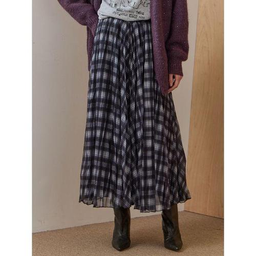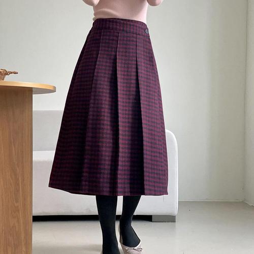 [미라클세븐]여성 빅사이즈 체크 플리츠 롱스커트 연말 스타일