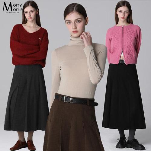 [모리모리스][모리모리스(Morry Morris)] 모직 플리츠 롱 스커트