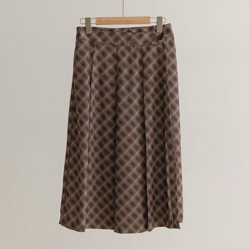 [엘리시아]트레 플리츠 랩 체크 롱 스커트