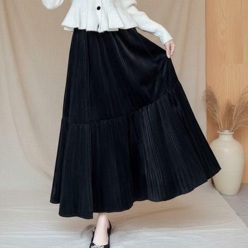 [옷자락]여성 폴리에스터 벨벳 플리츠 롱스커트