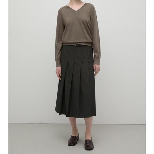 [스타일온미][루이스엔젤] 엘리지 소프트웜 백 밴딩 트임 디테일 A라인 플리츠 롱 스커트