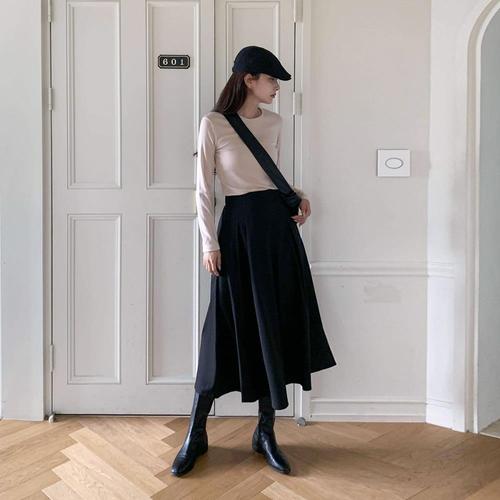 Destijl HC06 A라인 캉캉 플레어 플리츠 허리밴딩 깔끔한 무지 롱스커트 치마 D2523sk13W