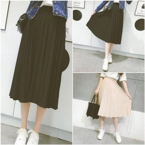 [옷자락]여자 사계절 기본 밴딩 플리츠 롱스커트