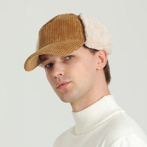 남성용 겨울 아웃도어 모자 조절 가능한 따뜻한 스포츠 골프 야구 아빠 이어플랩 두께 55-60cm (갈색)