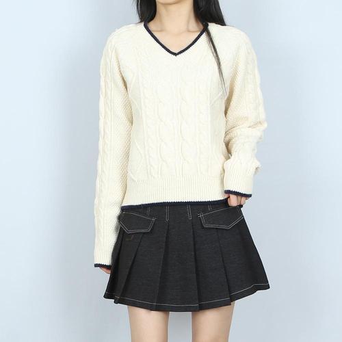 [파라노말샵]5색 피셔 배색 브이넥 나그랑 니트티 (파라노말샵)