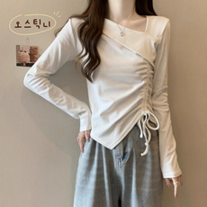 오스틱니 2025 NEW 여성 봄가을 날씬해 보이는 V넥 오픈 숄더 디자인 빅사이즈 트임 디자인 겨울 긴팔 티셔츠