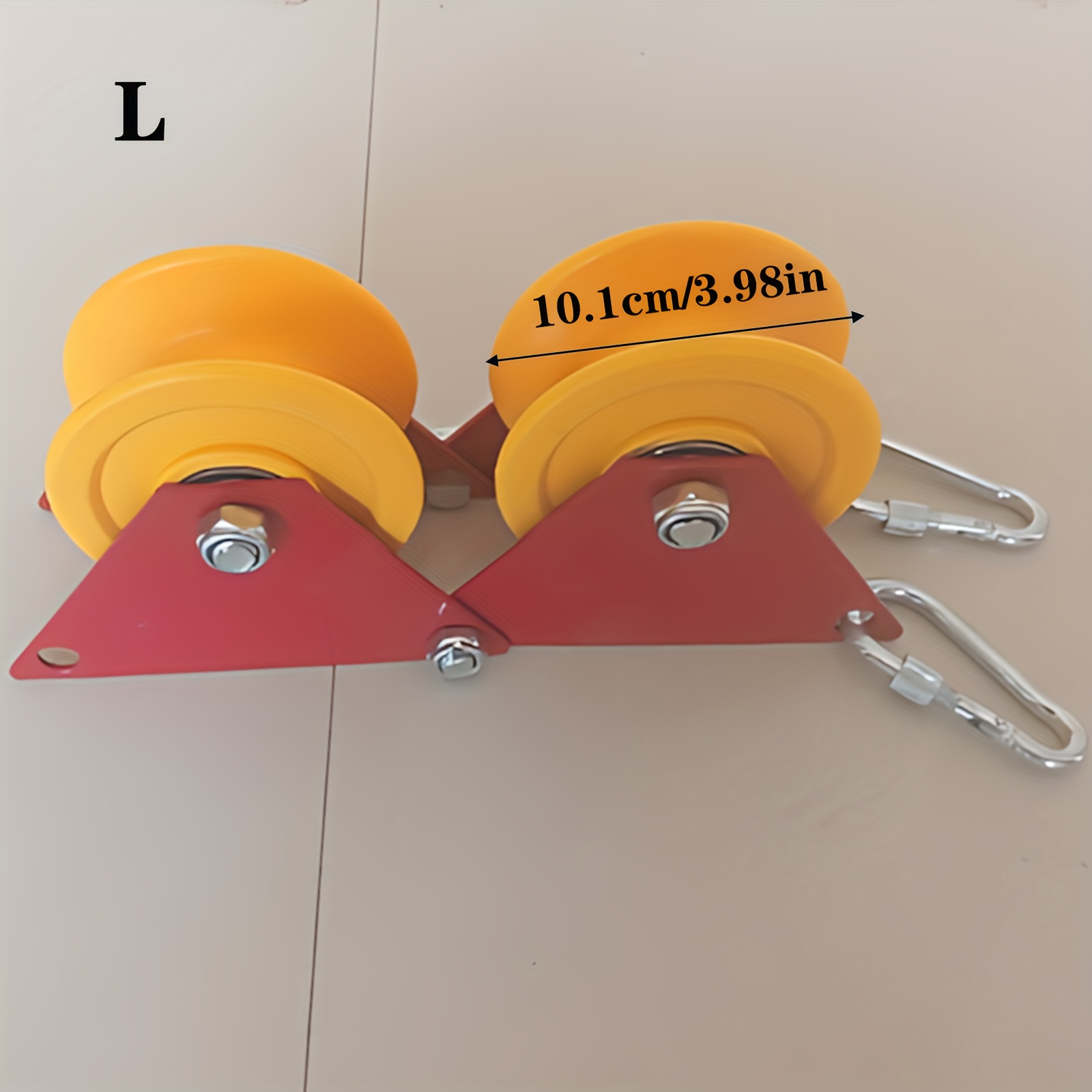 TEMU 헤비듀티 접이식 수동 풀리 시스템, 듀얼 V-그루브 휠 + 텐션 노브, 내구성 강한 금속 구조, 노력 절약형 디자인, 500kg 하중 용량, 건설/고공작업/텐트용 | 벽걸이형 미끄럼 방지 로프 포함
