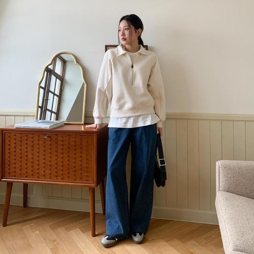 [옷자락] 여자 레직기 피치 기모 일자 데님 팬츠