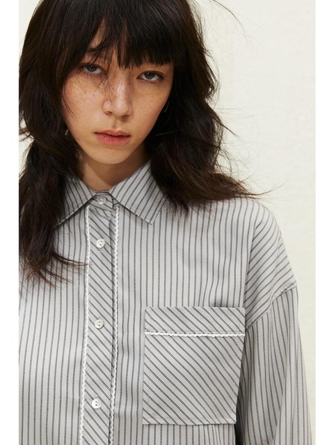 [에이치엔엠] 피코 트리밍 트윌 셔츠 그레이/스트라이프 1277420001