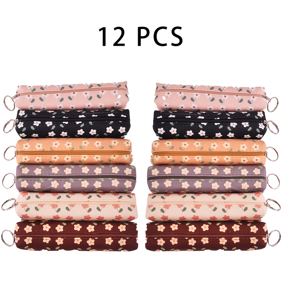 TEMU 6/12개 스위트 플로럴 헤어 클립 세트 - 스타일 휴대용 정리 가방 (핑크, 오렌지, 블랙, 브라운) 학교 용품, 펜, 연필 보관용 - 백투스쿨, 할로윈, 크리스마스 선물 추천, 귀여운 디자인, 내구성 있는 지퍼 잠금|필통