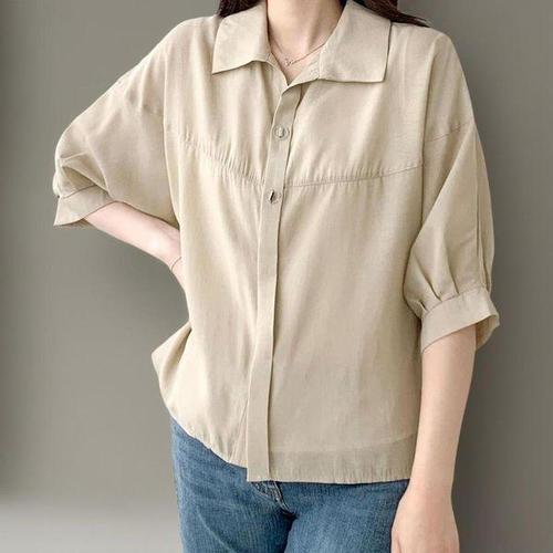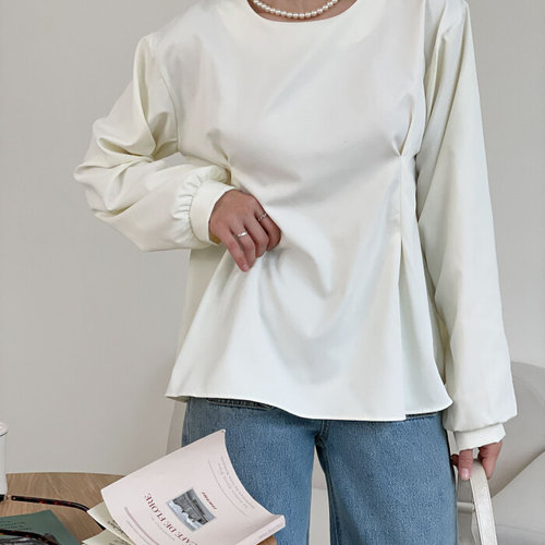 여성 소매 셔링 핀턱 노라카 루즈핏 블라우스