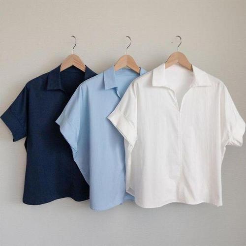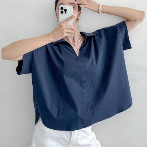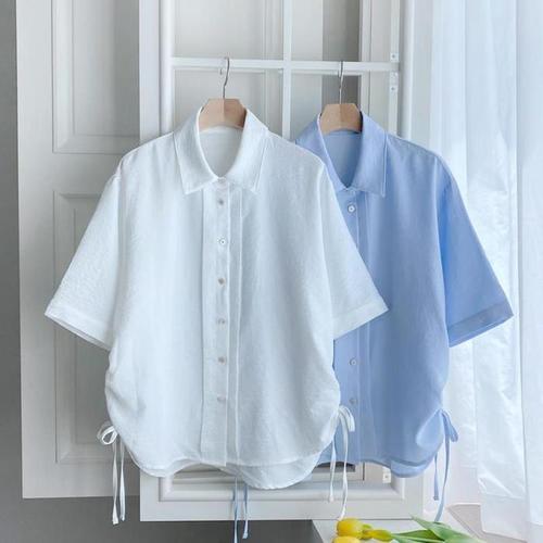 여자 오버핏 사이드셔링 핀턱 라인 반팔 남방