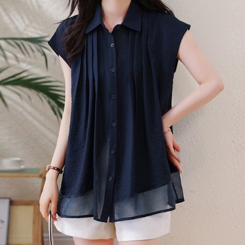 [블랙퀸]르피세 루즈핏 핀턱주름 블라우스 blk003726