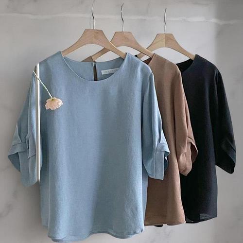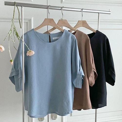 [옷자락]여성 레이온 소매 핀턱 셔링 루즈핏 노라카 블라우스
