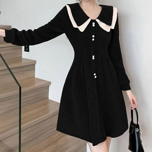 [모노무드]모노무드 코듀로이 원피스 이중카라 A라인 허리 핀턱 어깨셔링