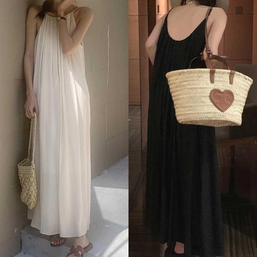 [신상오픈런]여성 여름 핀턱 캉캉 셔링 스트랩 롱 드레스