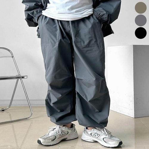 [보니제이]허리 프릴 밴딩 센터핀턱 와이드 트레이닝 롱팬츠 끈