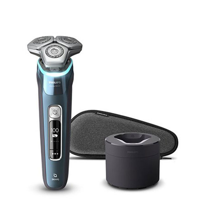 필립스 [중급] 필립스 9000 시리즈 전기면도기 S9982 아이스 블루[360도플렉스헤드/무선클렌징팟/카트리지/여행용파우치/앱연동]