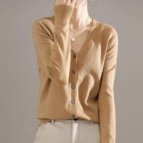 [신상오픈런]여성 레이온 슬림핏 골지 입술넥 긴팔 니트 가디건
