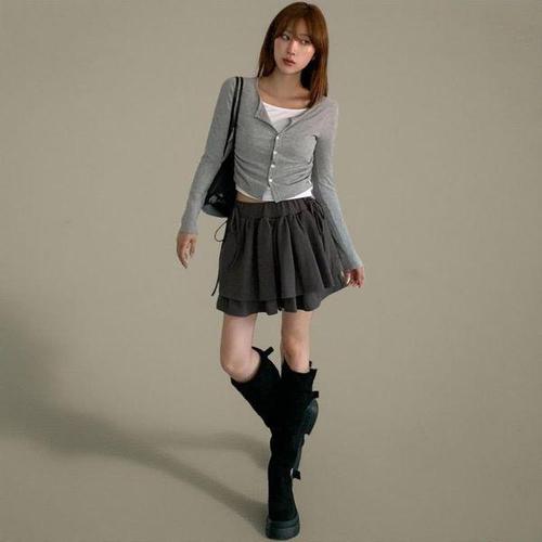 [신상오픈런]여성 슬림핏 레이어드 셔링 크롭 긴팔 니트 가디건