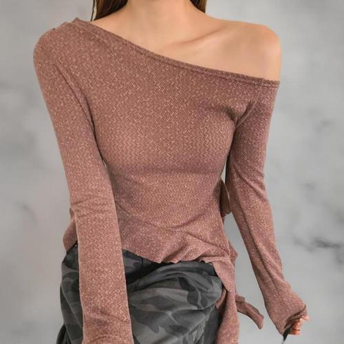 [옷자락]여자 오프숄더 가오리핏 슬림핏 사선 트임 가을 니트