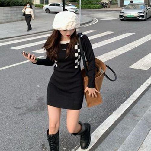 F2440 체스 슬림핏 미니 니트원피스 롱니트티 날씬핏 WFL8DJT