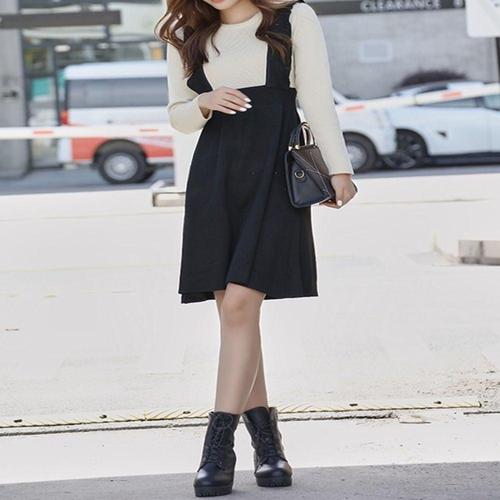LF66300 슬림핏 투피스 느낌 프릴 멜빵 니트 원피스 WFL8DM3