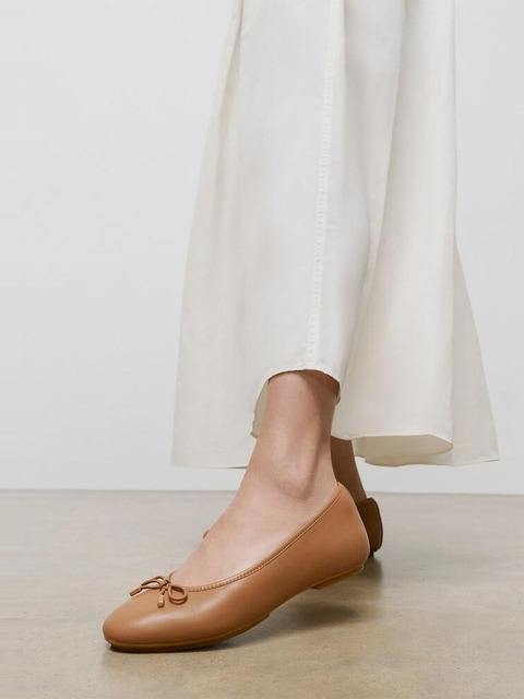[핏플랍] [삼성물산공식]여성 델리카토 보우 소프트 레더 발레리나 플랫슈즈데저트 탄(FT61K2M01B)