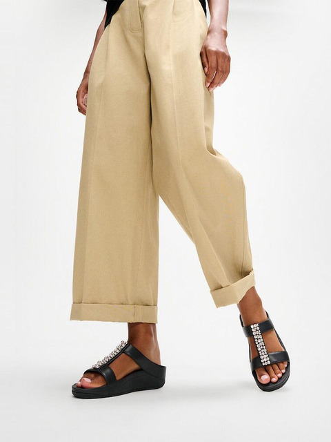 [핏플랍] [삼성물산공식]여성 피노 크리스탈 H바 슬라이드블랙(FT64K2D055)