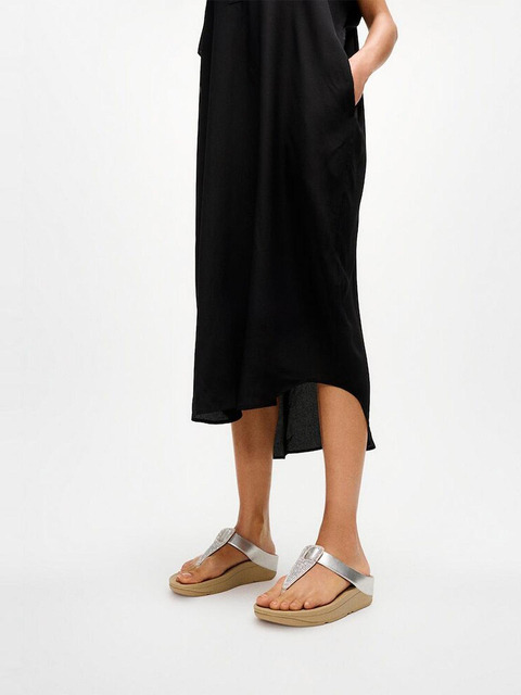 [핏플랍] [삼성물산공식]여성 피노 크리스탈 디테일 메탈릭 토 포스트 샌들올 블랙(FT64K2T125)