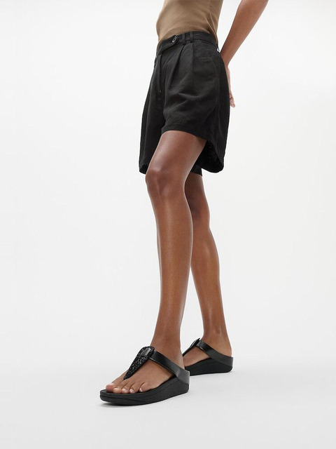 우먼 핏플랍 피노 비디 버튼 메탈릭 토 포스트 샌들 샌달 슬리퍼 - 메탈릭 블랙 11111601