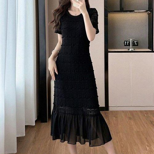 [핑크엘리제]레이스 시스루 반팔 롱 원피스 엘레인원피스