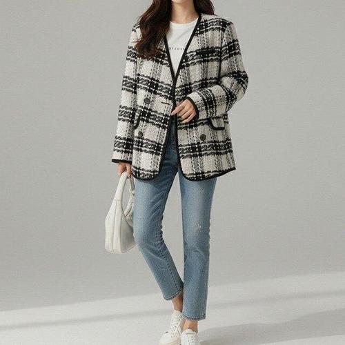 [핑크엘리제]트위드 기모 오버핏 하운드체크 아델린트위드자켓