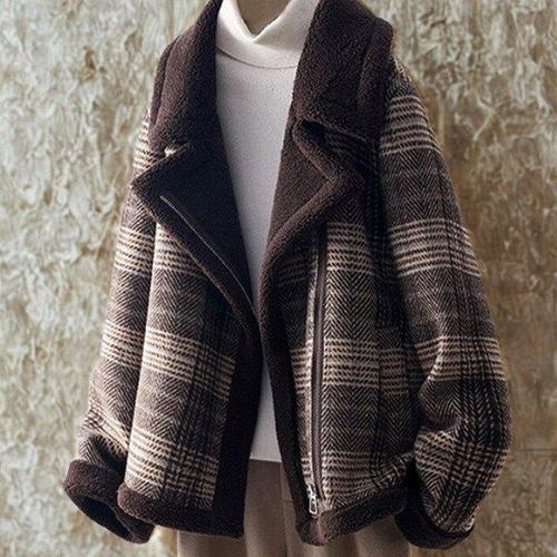 [핑크엘리제]빈티지 퍼카라 체크 무스탕 베셀라체크자켓