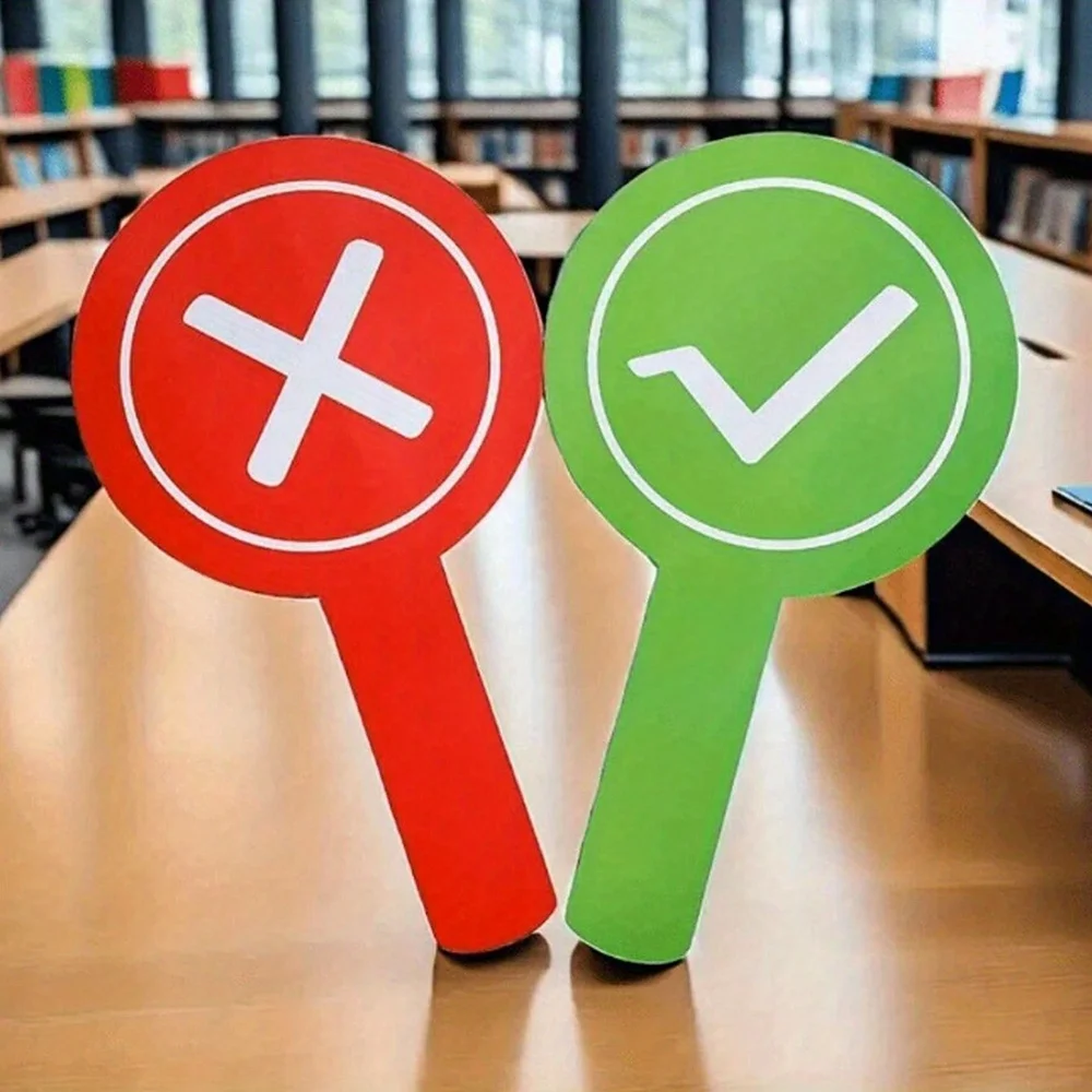 2개 교실 응답 핸드헬드 패들, 양면 인쇄 PVC 답변 표시기, 교육 교육 도구