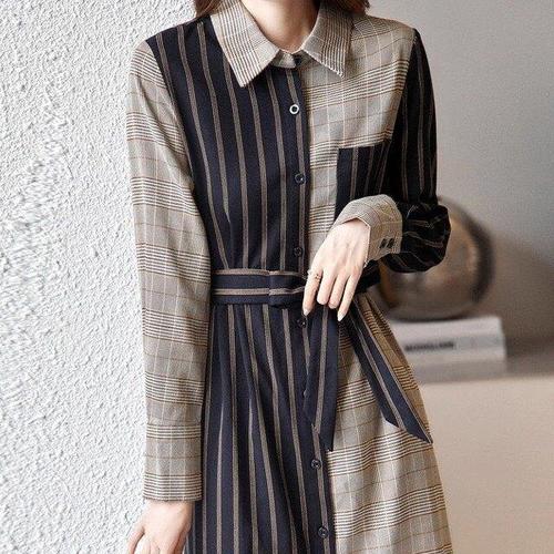 [핑크엘리제]가을 체크 스트라이프 셔츠원피스 더어텀데이원피스