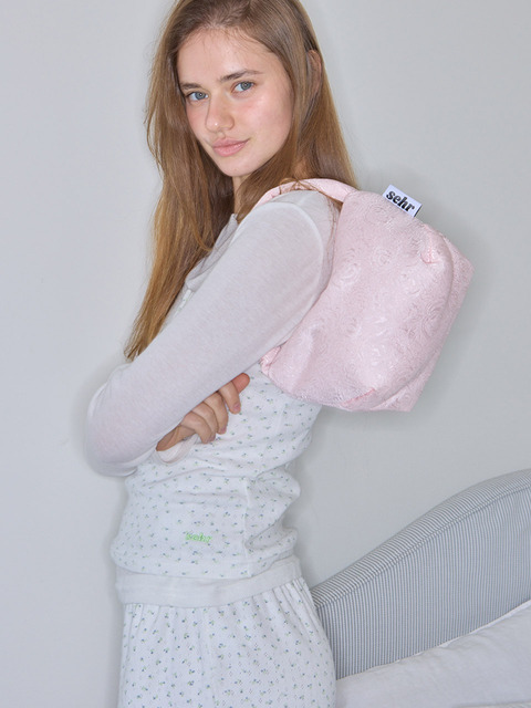 [세르] 플라워 자가드 파우치백 (라이트 핑크)