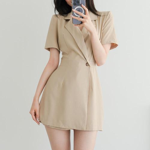 [옷자락] 여자 여름 하객룩 벨트 반팔 자켓 스타일 점프수트