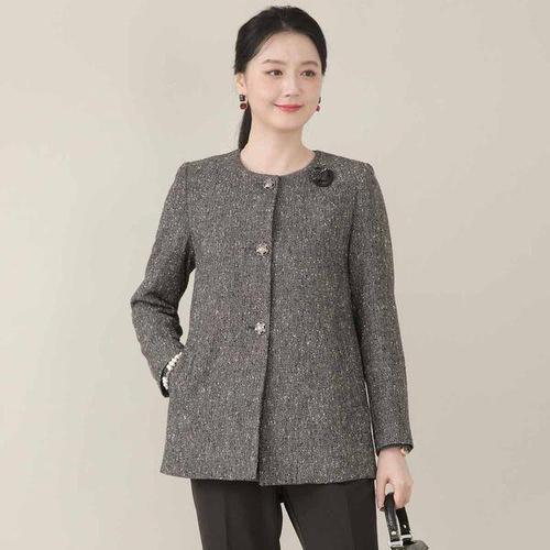 [애비뉴투지]엄마옷 프리미엄 트위드 브로치 라운드 여성 봄 가을 하객룩 하프 정장 자켓 J10510