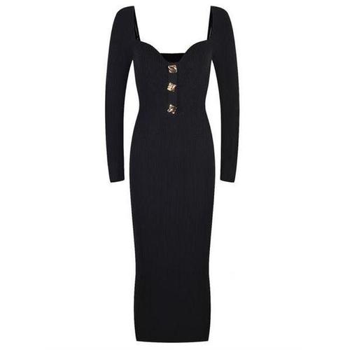 [셀러허브_여성트랜드패션]스퀘어넥 버튼 니트 롱원피스 핏 하객룩 2color SL_1004428