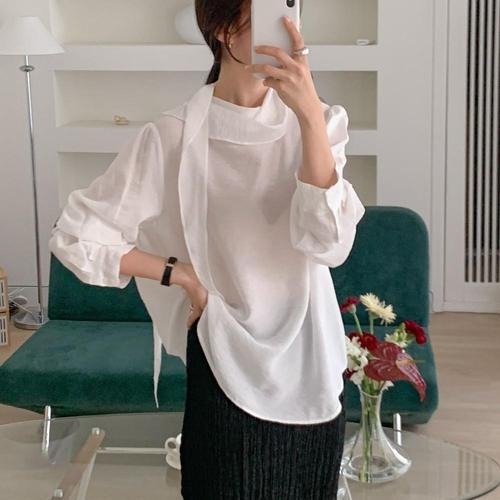 |KSH4250|여성 시스루 롱 블라우스 봄 하객 패션 빅사이즈 스카프