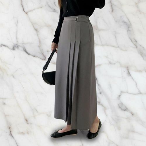 |KHK18FC|여성 플리츠 벨트 롱 스커트 하객 패션
