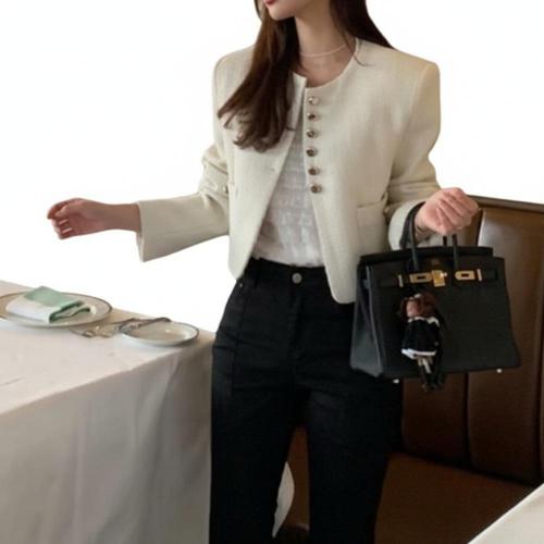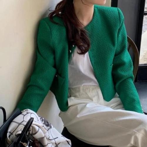 |CCJ6CFA|여성용 봄 하객 패션 데일리 트위드 크롭 재킷