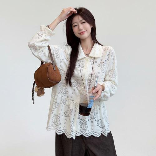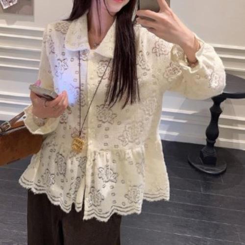 |CCH428A|여성 봄 시즌 패션 하객 스타일 로맨틱 레이스 프릴 페플럼 블라우스