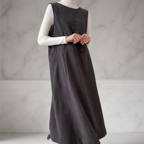 [옷자락] 여성 가을 하객 패션 민소매 뒷리본 속기모 핀턱 롱드레스