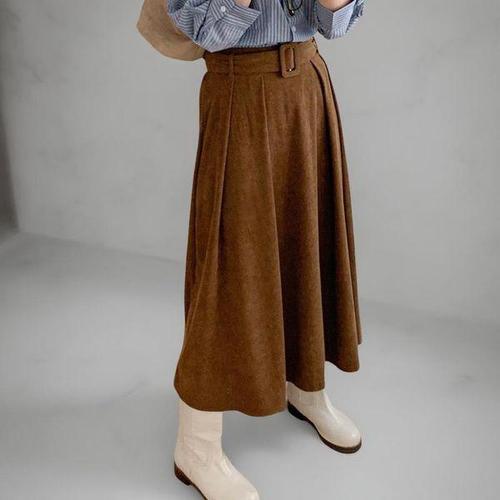 [옷자락]여성 가을 하객 패션 골덴 스커트 벨트 플레어 롱치마