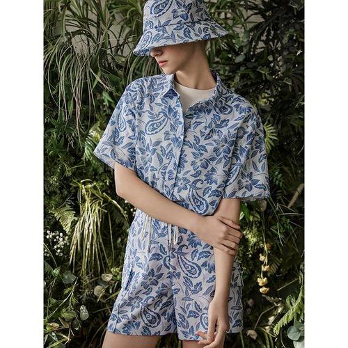 [모노무드]모노무드 여성용 하와이안 하프 셔츠 여름 패턴 블라우스