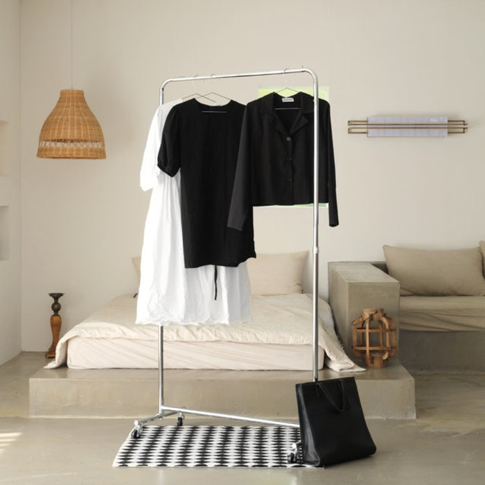 [하우스레시피] 바인 키 낮은 철제 스탠드 행거 크롬 - 행거 수납 긴옷 코너 미니 옷방 고정식 일자 벽