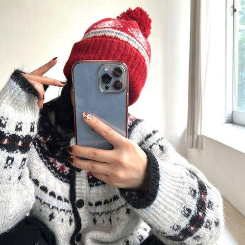 [네모엔룩]노르딕라운드 여성용 북유럽 패턴 라운드배색 캐주얼 도톰 포실포실 라운드넥 니트 가디건