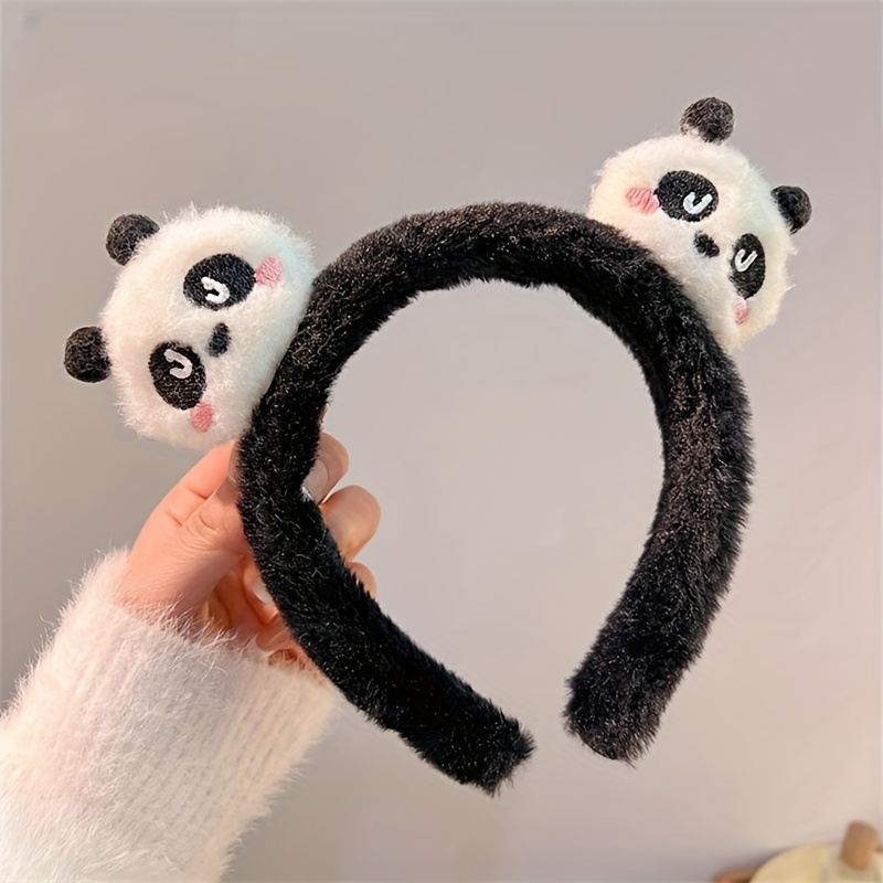 TEMU 1pc 달콤한 스타일 판다 플러시 드레스 업 헤드밴드 여성용, 레이온 동물 헤어밴드, 컬러 매칭 프린트, 깃털 없음, 메이크업 및 얼굴 세척에 적합, 14세 이상, 단일 피스|인견원피스